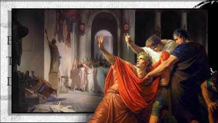 En los idus de marzo se produjo el magnicidio más importante de la historia antigua, es el senado donde se conspiró contra el dictador Julio Cesar, y le dio muerte, según porque la democracia estaba en peligro.