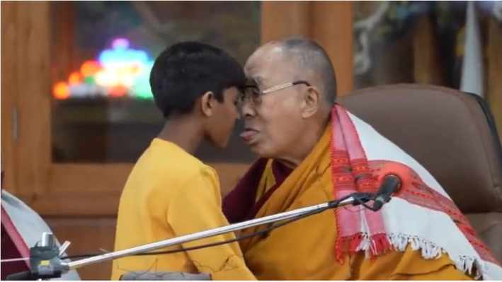 Las imágenes muestran al líder budista dando un beso al menor en los labios y preguntándole si le puede "chupar" su lengua. Segundos después, señala su boca y saca la lengua. ¡Qué asquerosa y aberrante situación!.